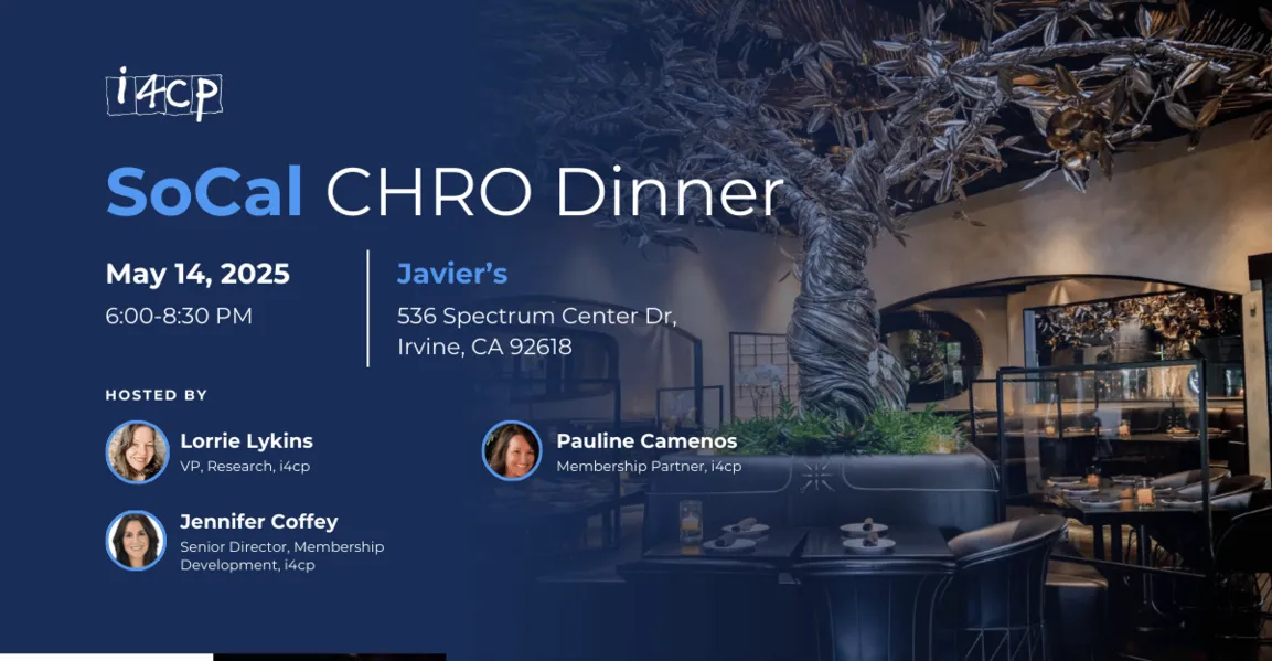 i4cp’s Regional CHRO Dinners are invite-only in-person events exclusively for local CHROs and CPOs. It is designed to serve as a vendor and consultant-free forum to explore shared challenges, hear from thought leaders, and build meaningful relationships.